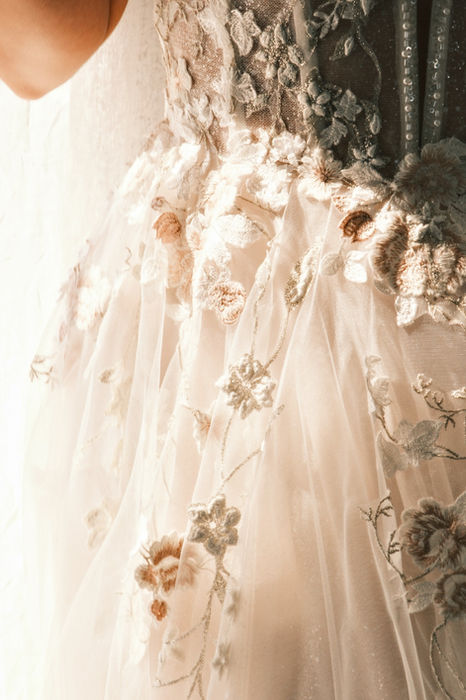 Рокля със царствен силует и фини бродерии, посипана съз звезден блясък, сякаш излязла от приказките на Андерсен. Това бижу е перфектната рокля както за плажната сватба, така и за гората или града. Подшушнаха ни, че е също толкова удобно, колкото е изящна, така че остава само да си сложите короната и да завласдеете завинаги неговото сърце.